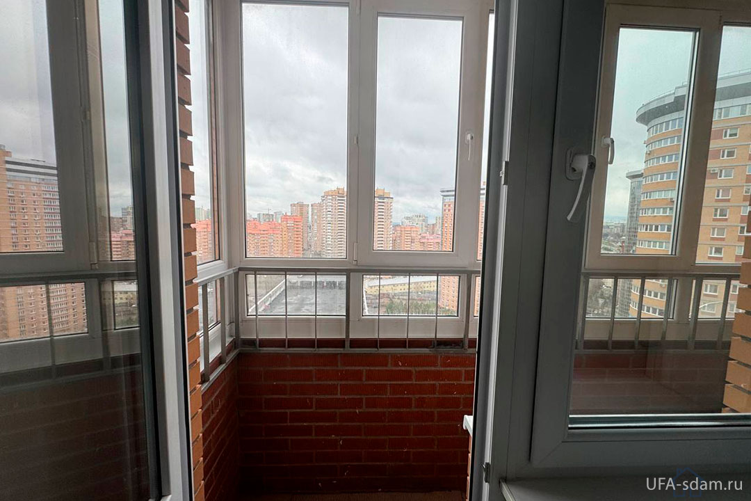 - Комфортный сон: раскладной диван и живописный вид на город с 17-го этажа.