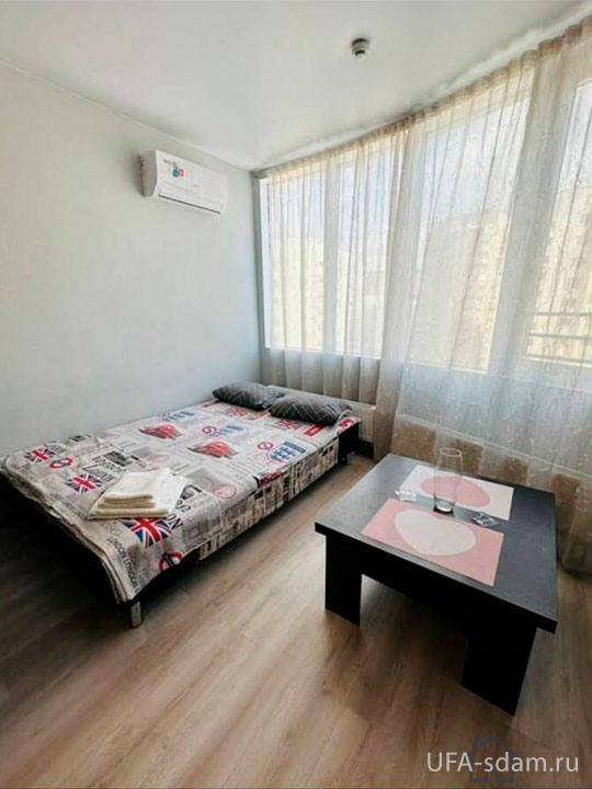 - Размещение до 4 человек: двуспальная кровать и раскладной диван.